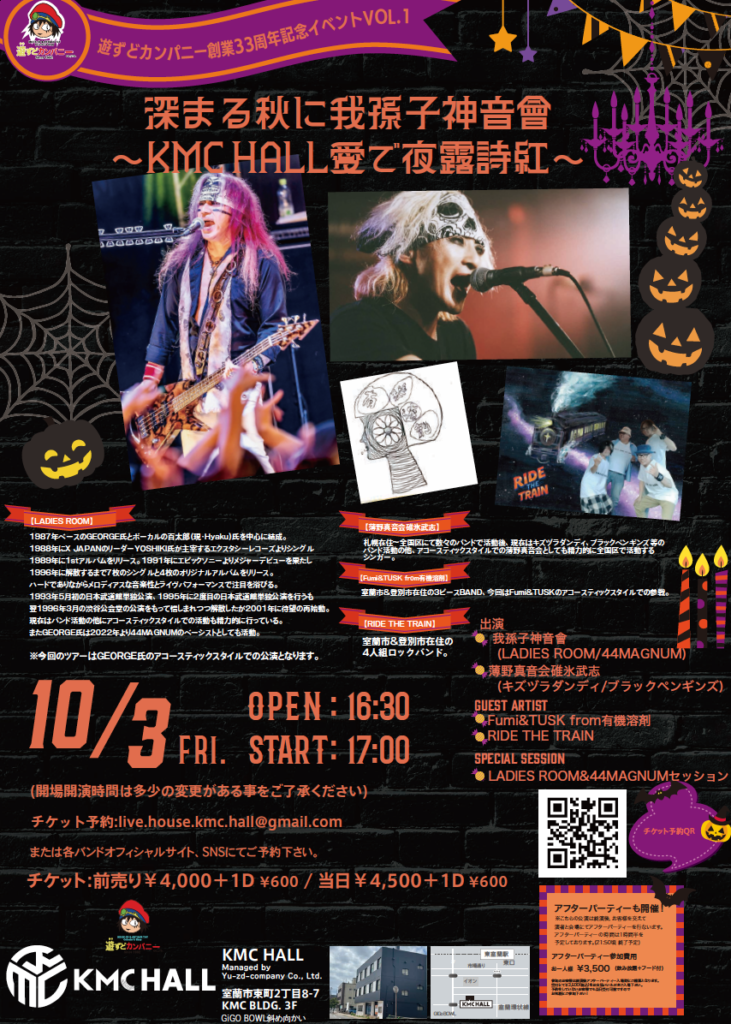 2025年10月3日(金)遊ずどカンパニー創業33周年記念イベントVOL.1深まる秋に我孫子神音會~KMC HALL愛で夜露詩紅~